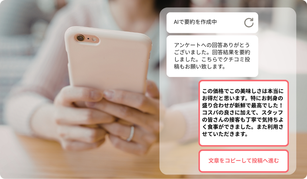 アンケートを参照してAIがクチコミ文章を自動で作成