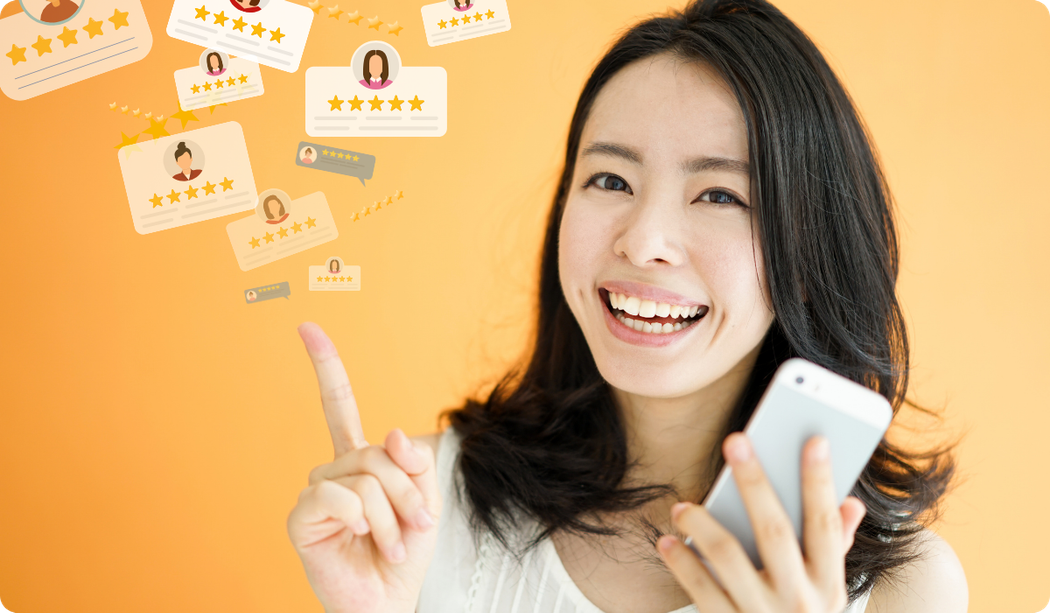 飲食店、クリニック、美容サロン、トレーニングジム、ホテル、小売店など幅広い業種でご利用いただいています。クチコミが重要な役割を果たす店舗型のビジネスに最適です。